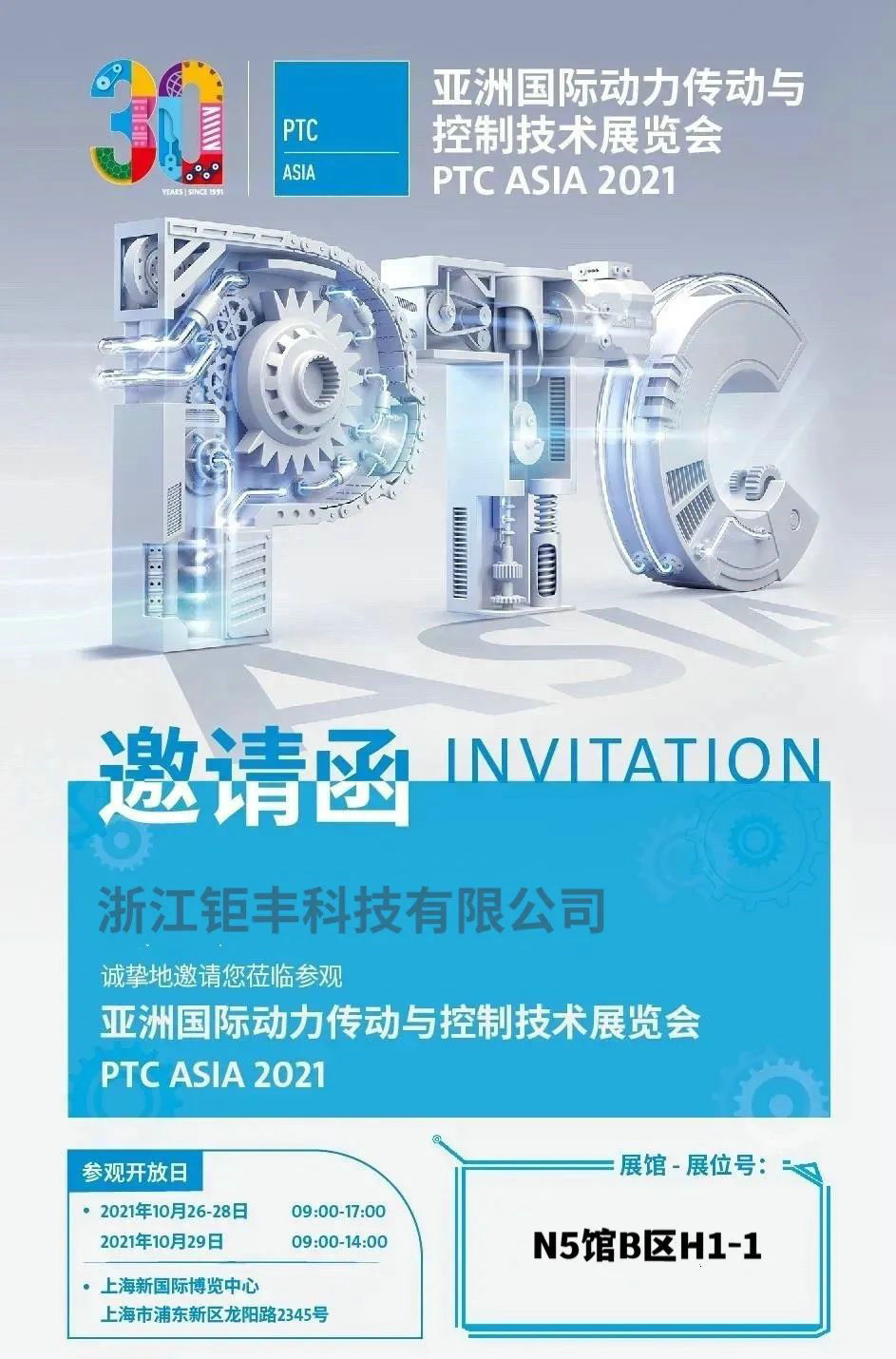 非常感谢您一直以来对k8凯发天生赢家一触即发科技的支持与厚爱!PTC ASIA亚洲国际动力传动与控制技术展览会将于2021年10月26日在上海新国际博览中心拉开帷幕!届时,我们将在N5馆B区H1-1展位恭候您的莅临,期盼您的参观指导,期待与您携手并进、共赢未来!