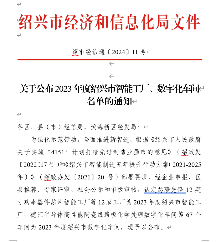 近日,绍兴市经济和信息化局发布了《关于公布2023年度绍兴市智能工厂、数字化车间名单的通知》(绍市经信通〔2024〕11号),浙江k8凯发天生赢家一触即发科技有限公司凭借在新能源汽车驱动电机铁芯智能制造领域的卓越表现,成功被评为2023年度绍兴市智能工厂。